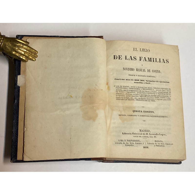 EL LIBRO DE LAS FAMILIAS. Novísimo manual práctico de cocina, higiene y economía doméstica. Contiene más de dos mil fórmulas.