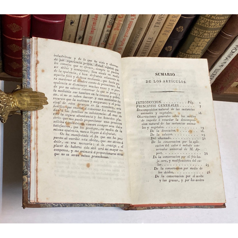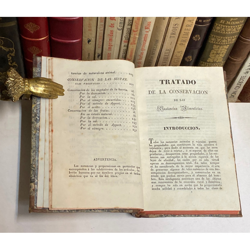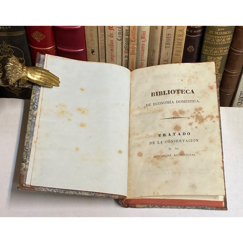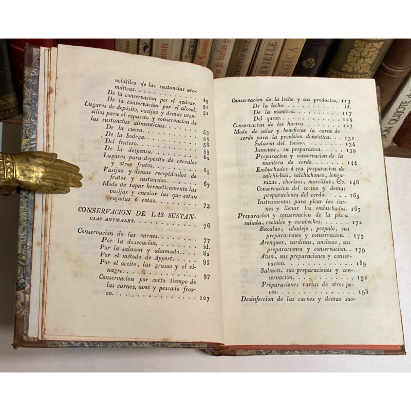 4º. 334 p. Cubiertas con refuerzos de celo, además de pérdida en la delantera. ==Desde la página 183 a la 267 trata sobre la alimentación en el ejército, con los siguientes capítulos: “Circunstancias que influyen en la alimentación del ejército en campaña” y “Noticias relativas á los principales artículos de subsistencias en campaña”.