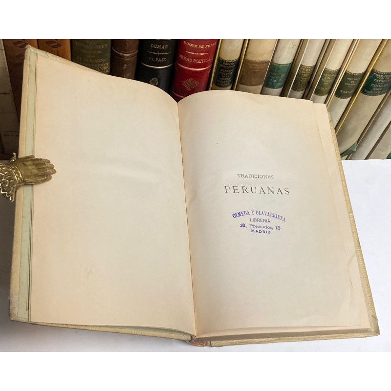 4 vols. 4º mayor (21,5 x 16 cm). 1 retrato, VIII, 408 p. 368 p. 400 p. y 360 p. Edición ilustrada. Bella encuadernación editorial en holandesa pergamino con planos de tela estampados. Ejemplar con sello de librería en la anteportada del tomo II.