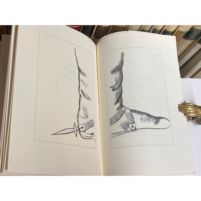 4º mayor (26 x 18 cm). 144 p., con 30 láminas de bocados y estribos, dibujados por el autor en el siglo XVI. Impresión en papel verjurado. Rústica. Edición numerada y nominada de 220 ejemplares (este no lleva nombre ni número, por no estar asignado).