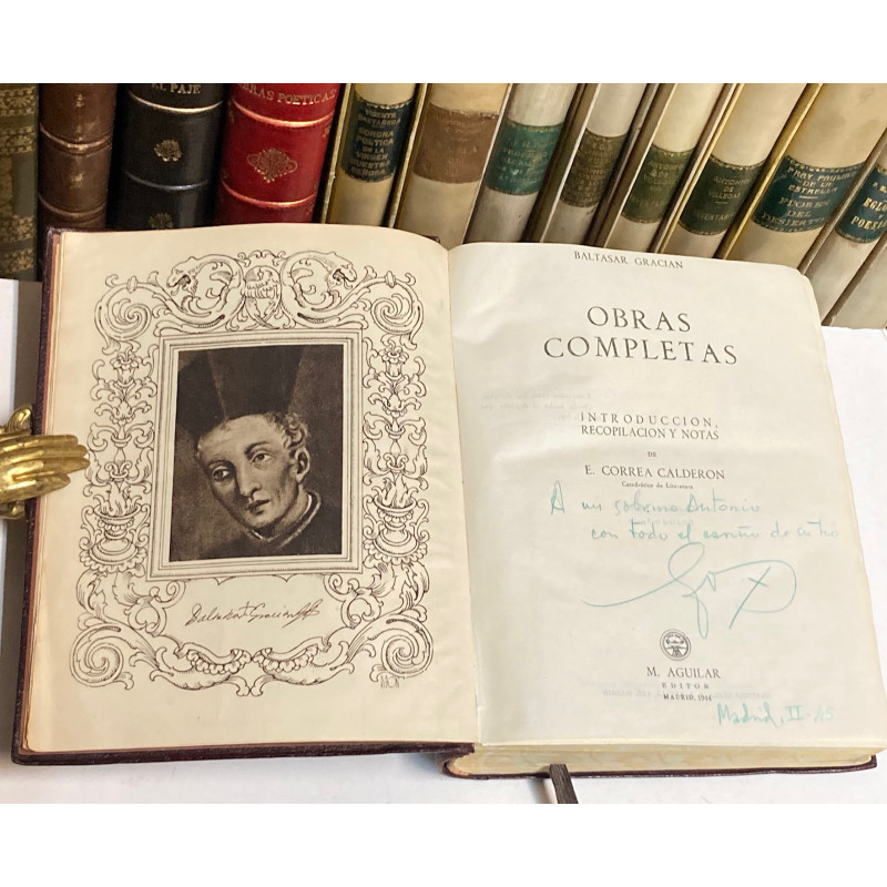 8º mayor (18 x 14 cm). 1 retrato, CLIV, 989 p., en papel biblia. Encuadernación Editorial. Cortes pintados. Dedicatoria a lápiz de color en portada.