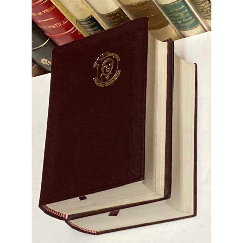 2 vols. 8º (14 x 9,5 cm). 1 retrato, CC, 1301 p. y 1 retrato, 1793 p. Impresión en papel biblia. Encuadernación Editorial. Papel de guardas del Tomo II sin decorar.