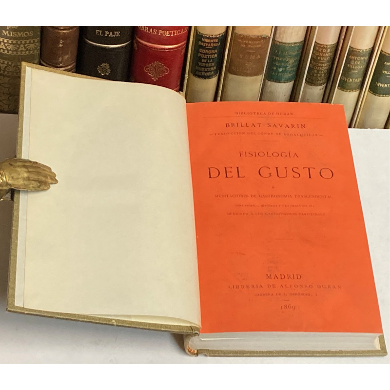 | Editorial | Madrid, Librería de Alfonso Durán, 1869. 1ª edición en español, de este clásico de la gastronomía, cuya primera edición se publicó en 1825. |