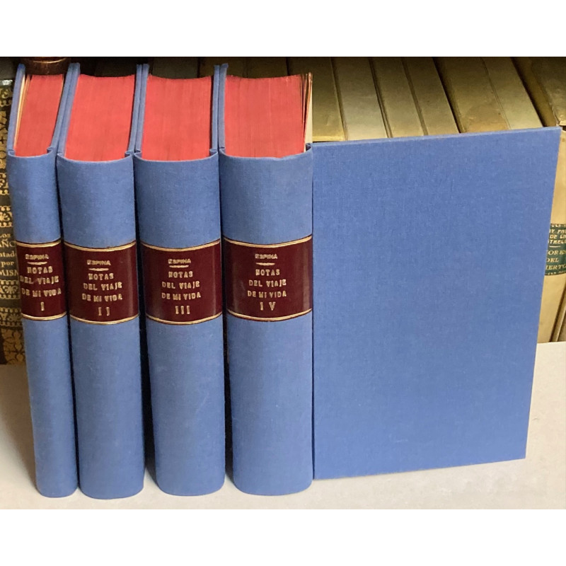 4 vols. 4º (19,5 x 13 cm). TOMO I: 1850-1860. Ante mis libros y mis recuerdos. 1 retrato, 229 p., [1] p. TOMO II: 1861-1870. La formación de mi pensamiento. 1 retrato, 467 p., [1] p. TOMO III: 1871-1880. Mis luchas, mis primeros años de vida independiente y profesional. 1 retrato, 521 p., [1] p. TOMO IV: 1881-1890. En pleno ejercicio profesional. 1 retrato, 560 p., [1] p. Tela nueva.