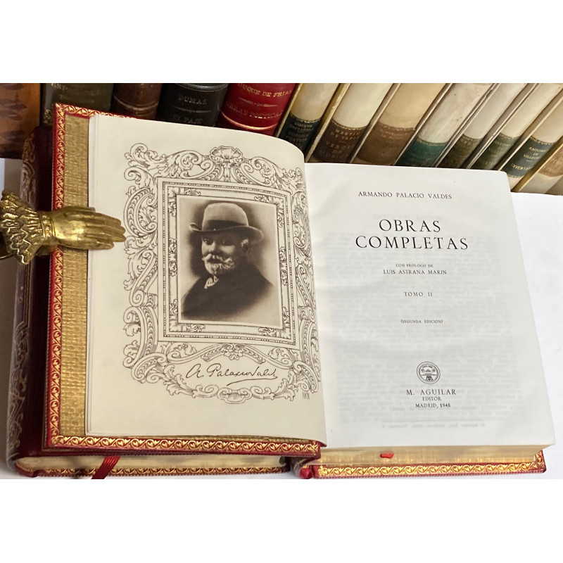 3 vols. 8º mayor (18 x 15 cm). TOMO IV: Novelas. 1 retrato + 1885 p. TOMO V: Novelas. 1 retrato, 2000 p. TOMO VI: Teatro, Cuentos y Miscelánea. 1 retrato + 2087 p. En papel biblia. Enc. Editorial. Cortes pintados.