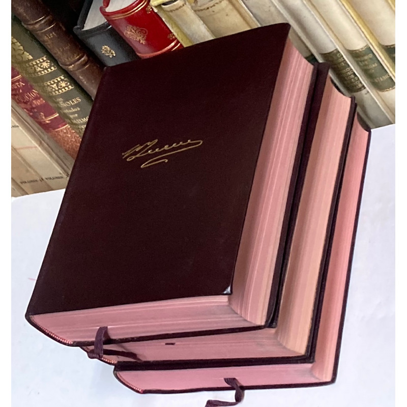 3 vols. 8º mayor (18 x 14,5 cm). 1 retrato, 1207 p., [1] p. ; 1 retrato, 1395 p., [1] p. y 1088 p., [1] p. Impresión en papel biblia. Encuadernación Editorial. Cortes color rosa