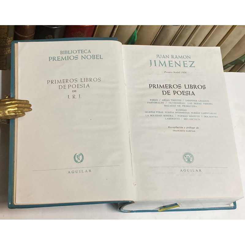 4º menor (23 x 19 cm). 1 retrato + 1441 p. en papel biblia. Enc. Editorial (azul y amarilla). CONTIENE: Sonetos espirituales / Estío / Diario de un poeta recién casado / Eternidades / Piedra y cielo / Belleza / Poesía / La estación total / Animal de Fondo.