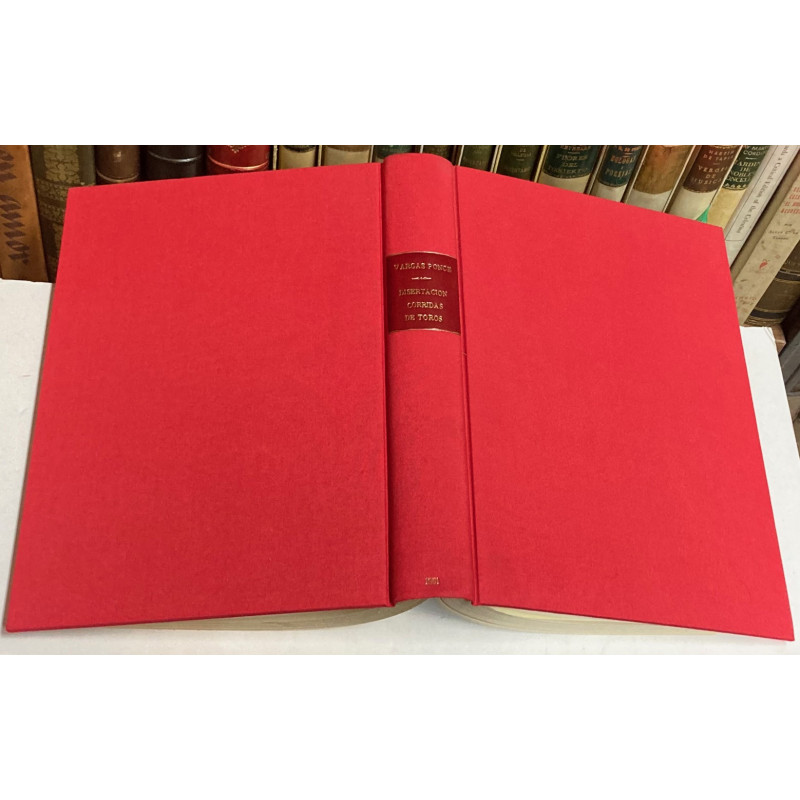 8º mayor. 47 p., [2] h. Holandesa moderna (lomo con hierros dorados alusivos al tema). Conserva cubierta original. ==Este tratado didáctico sobre torear a caballo apareció por primera vez publicado en 1653, en la "Relación de las fiestas eclesiásticas y seculares de la mui noble y siembre leal Ciudad de Córdoba ha hecho a su Ángel Custodio San Rafael este...
