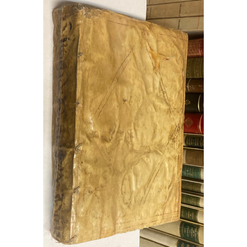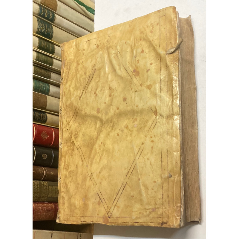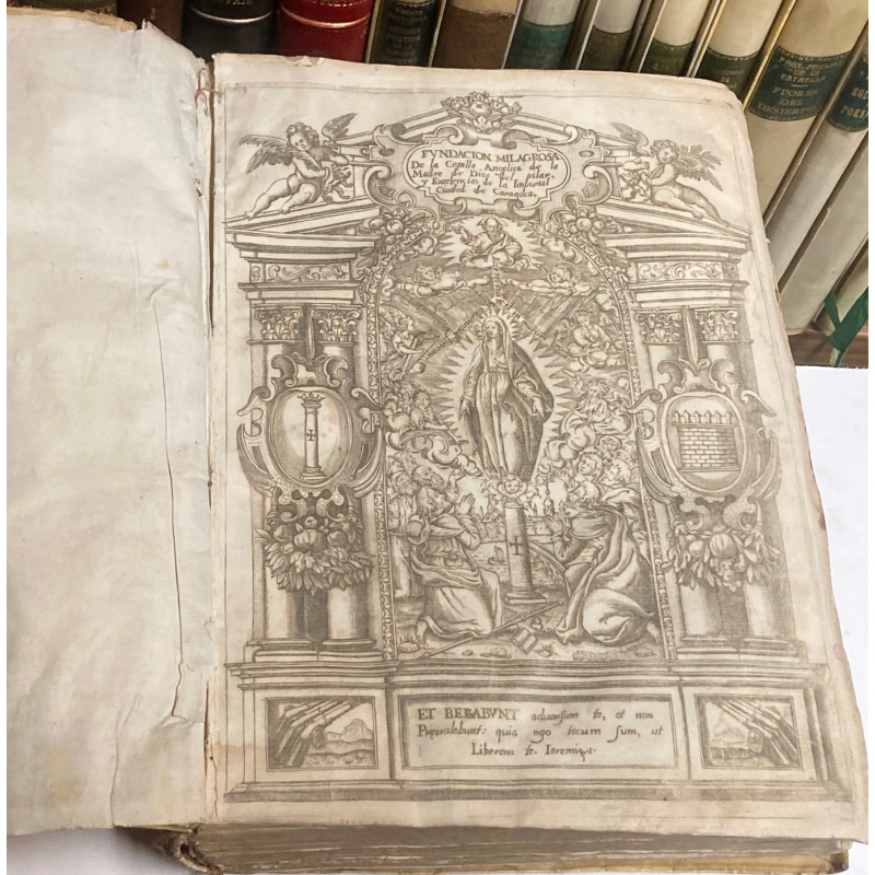 Folio. Frontis calcográfico, 16 h., 28 5p., 6 h., 452 p., 12 h. Pergamino con rotulación manuscrita en el lomo.